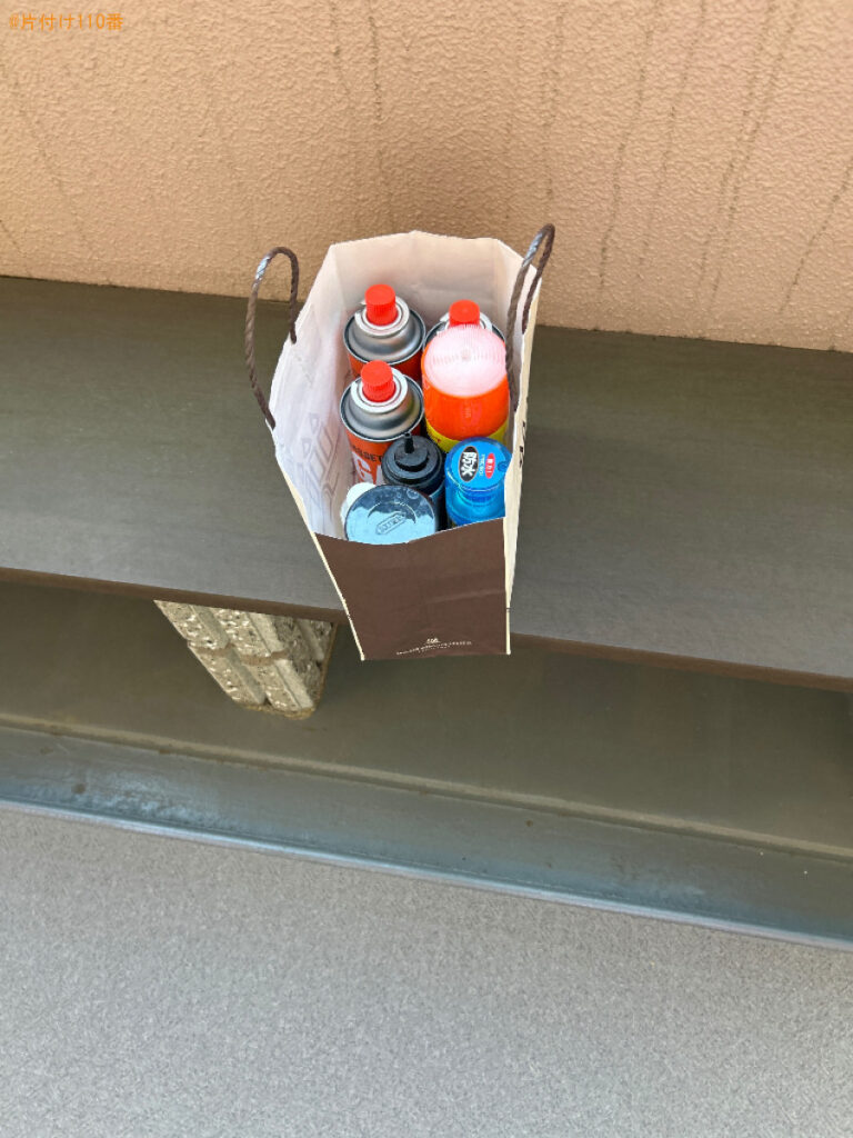 | 担当のコメント | ガスボンベの処理にお困りのお客様からご相談いただきました。見積り額がご予算内だったことがご依頼の決め手になったようです。片付け110番では、最短即日のお伺いが可能です。不用品がございましたらまたいつでもご相談ください。 |